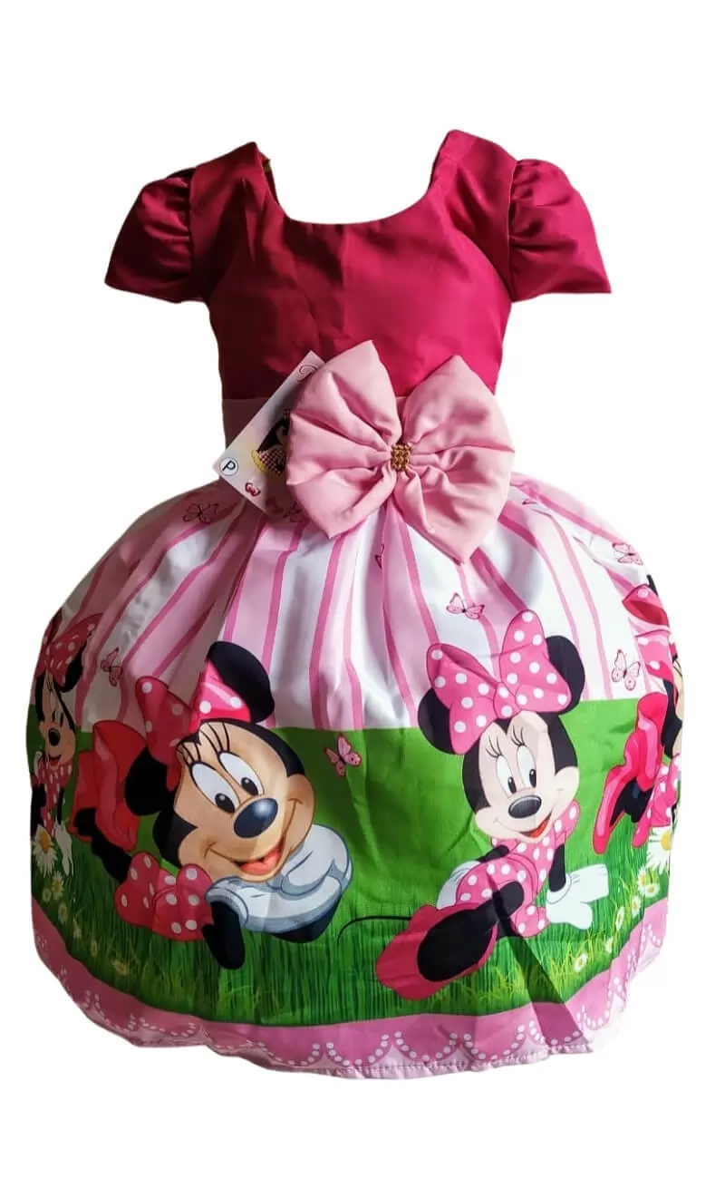 Vestido Infantil Tema Ratinha Rosa com Listras – Delicadeza e Encanto