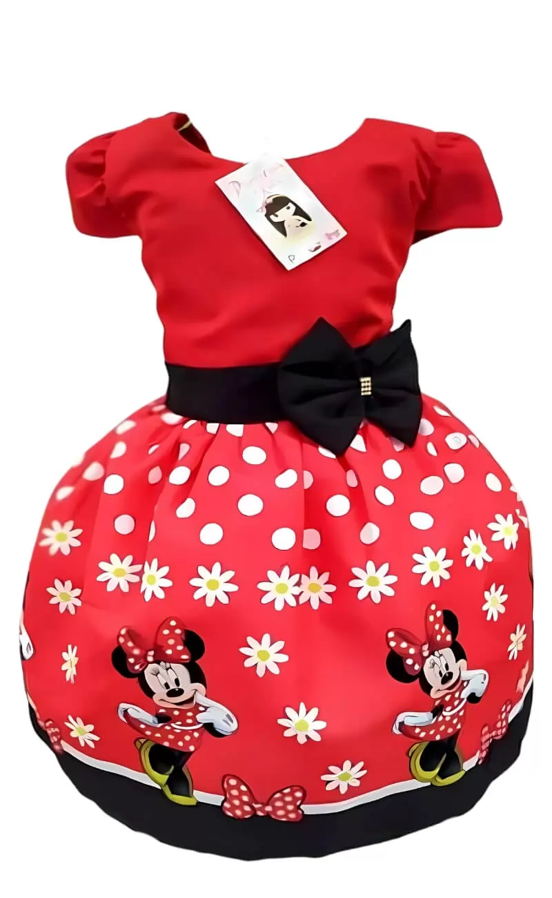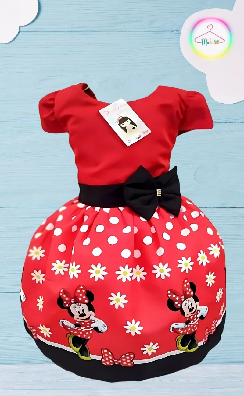 Vestido Infantil Tema Ratinha Vermelha com Flor – Encanto e Delicadeza para sua Princesa
