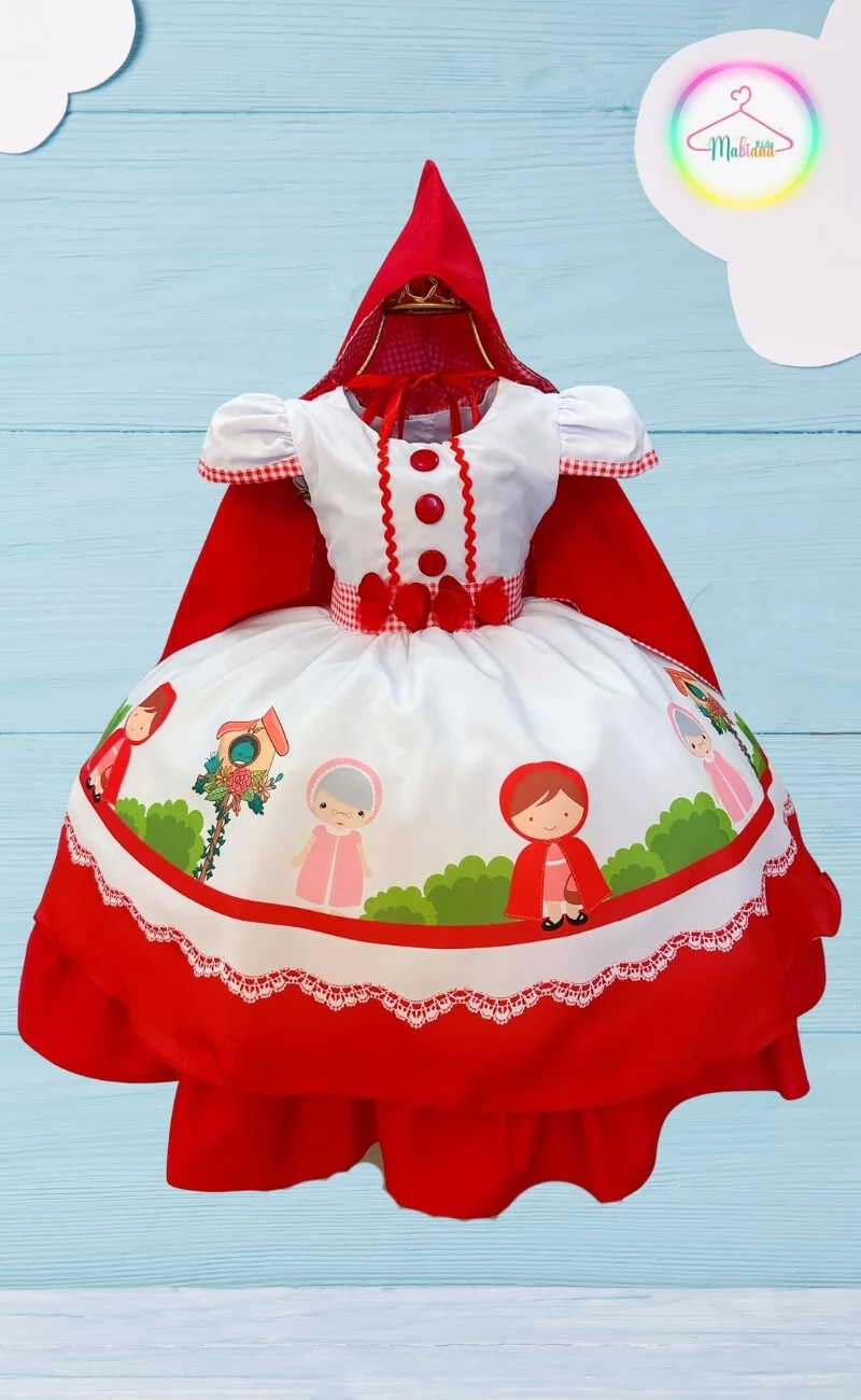 Vestido Luxinho Princesas Chapeuzinho Vermelho com Capa e Capuz | Mabiana Kids