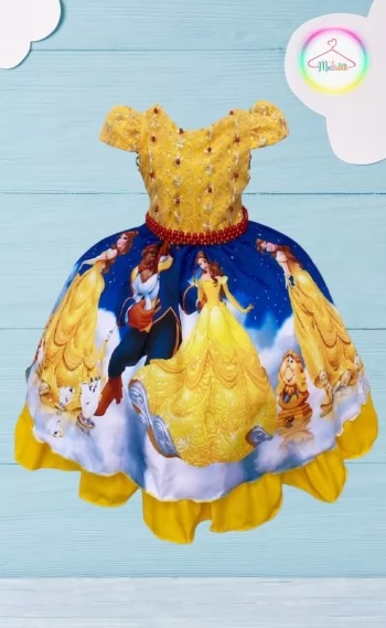 Vestido Luxinho Tema Princesa Bela - Encanto e Doçura Infantil | Mabiana Kids
