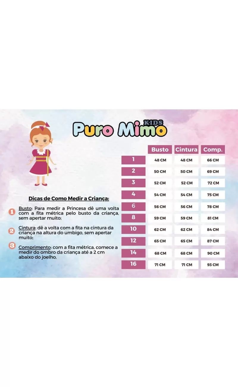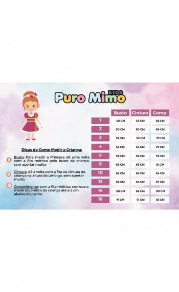 TAMANHO / BUSTO / CINTURA / COMPRIMENTO