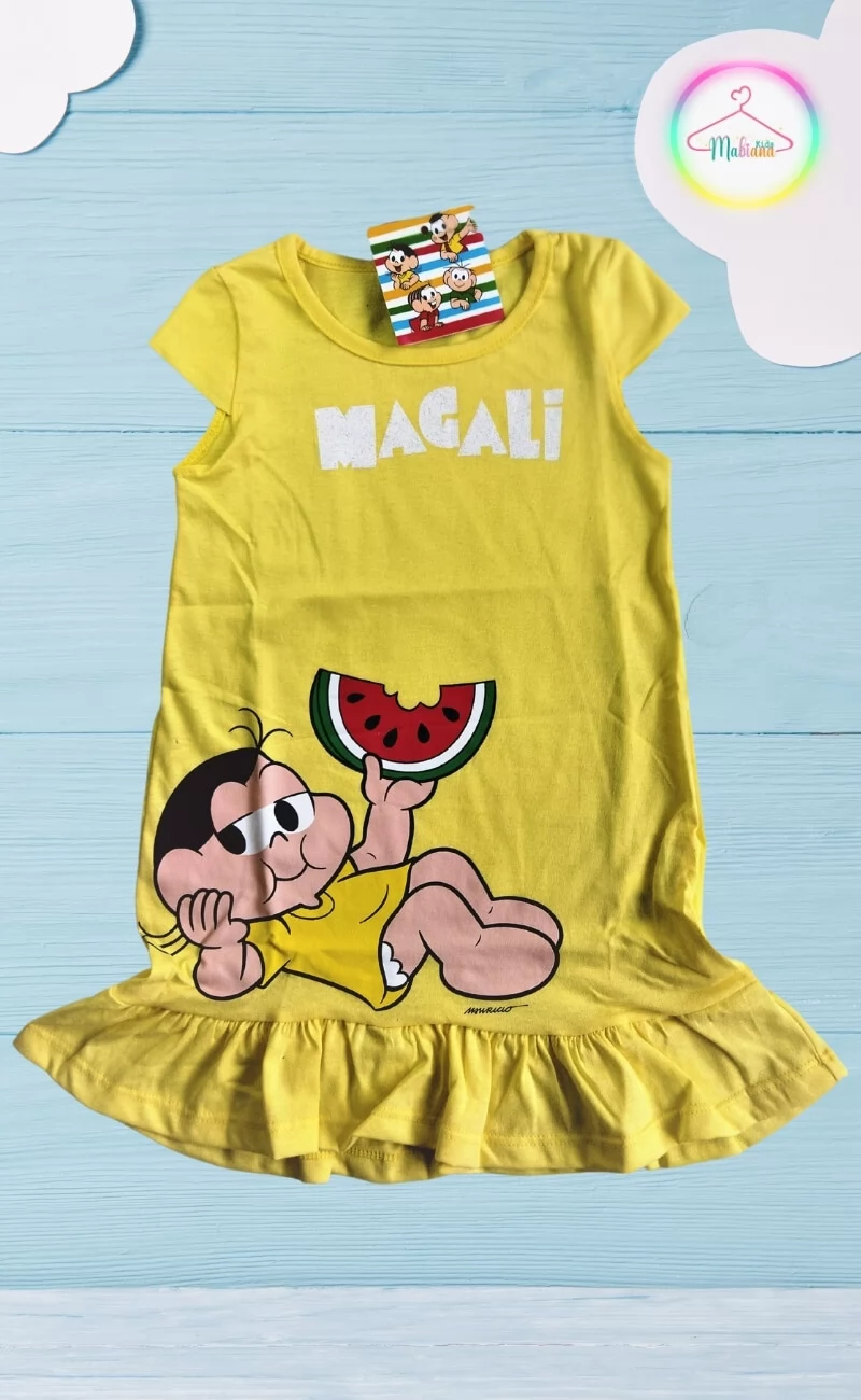 Vestido Magali Amarelo Infantil - Fantasia Temática com Conforto | Mabiana Kids