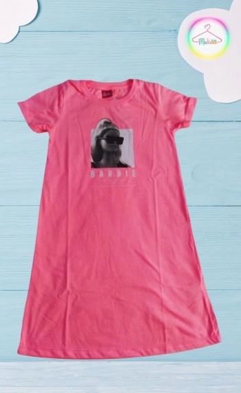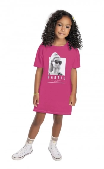 Vestido Infantil Barbie Rosa Meia Malha Conforto Festa