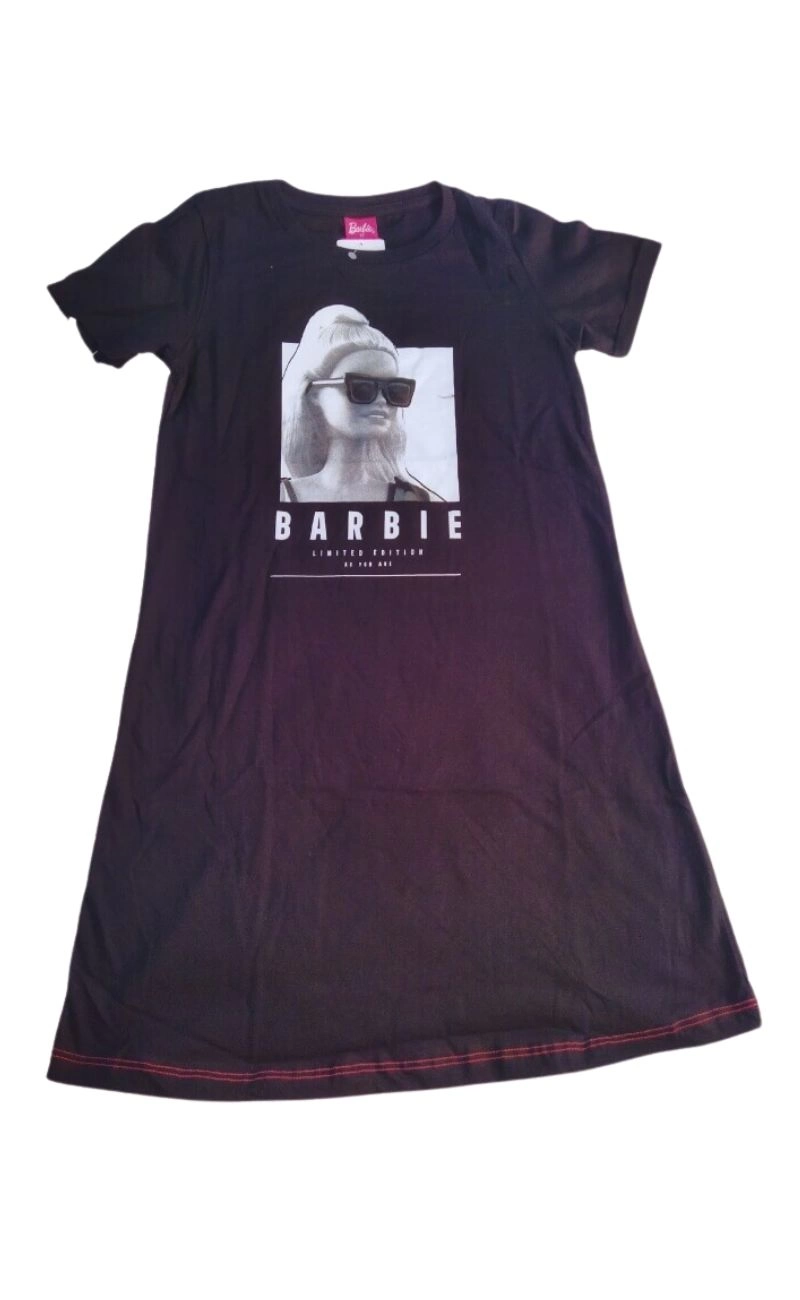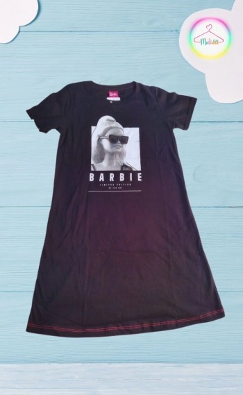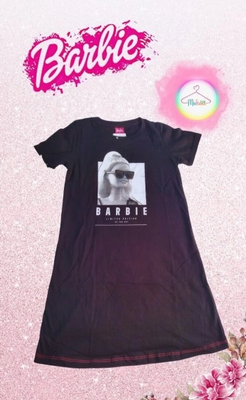 Vestido Infantil Barbie Preto Meia Malha Conforto Festa