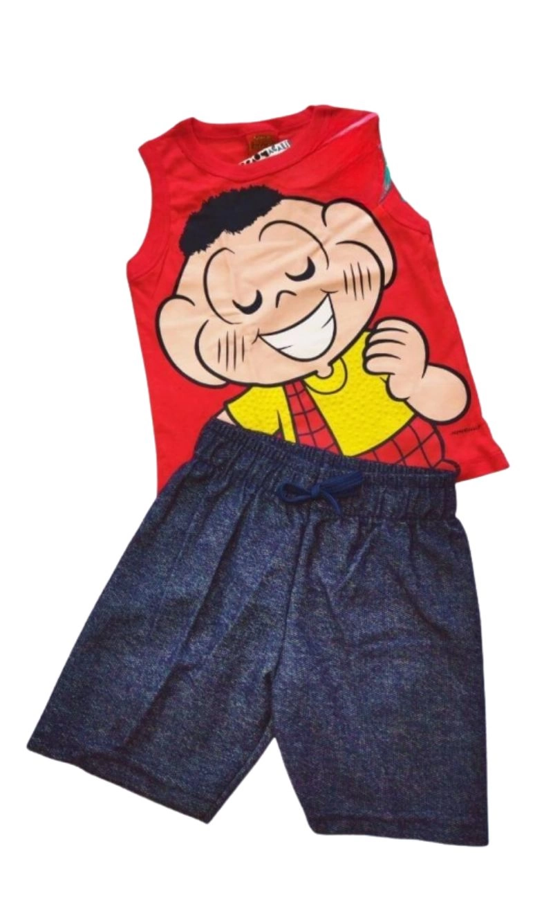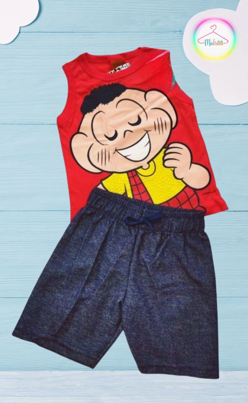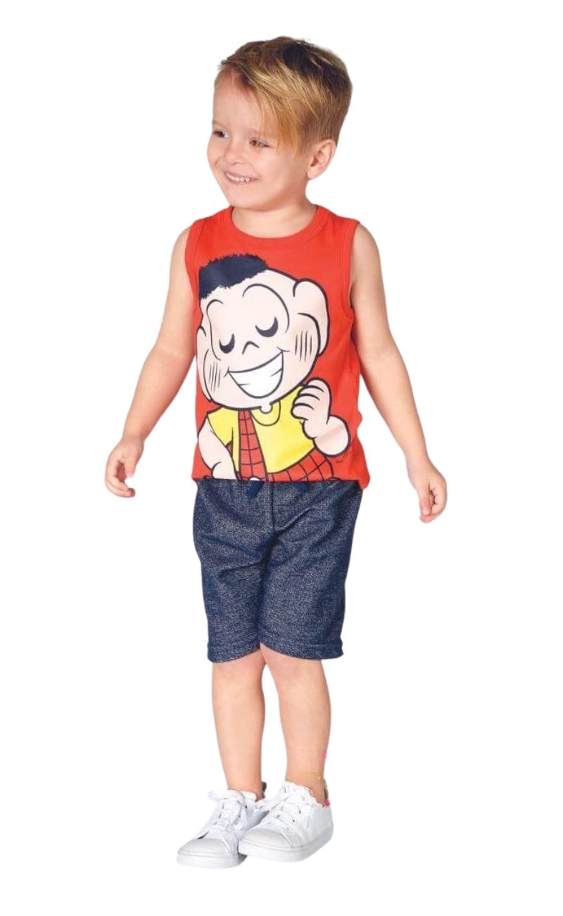 Conjunto Infantil Regata Cascão Turma da Mônica Vermelho e Marinho