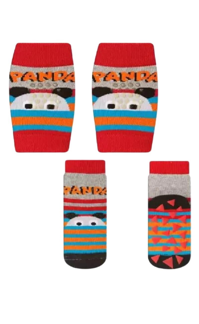 Este lindo produto Kit Baby Play foi pensado para o conforto de seu bebê que está na fase de gatinhar. Ele é composto por 1 (um) par de joelheira atoalhada e 1 (um) par de meias antiderrapantes.