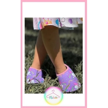 Sapatilha Infantil Neoprene Antiderrapante - Unicornio Roxo