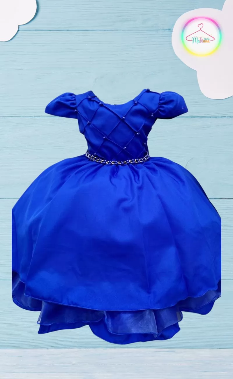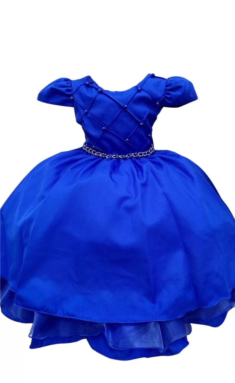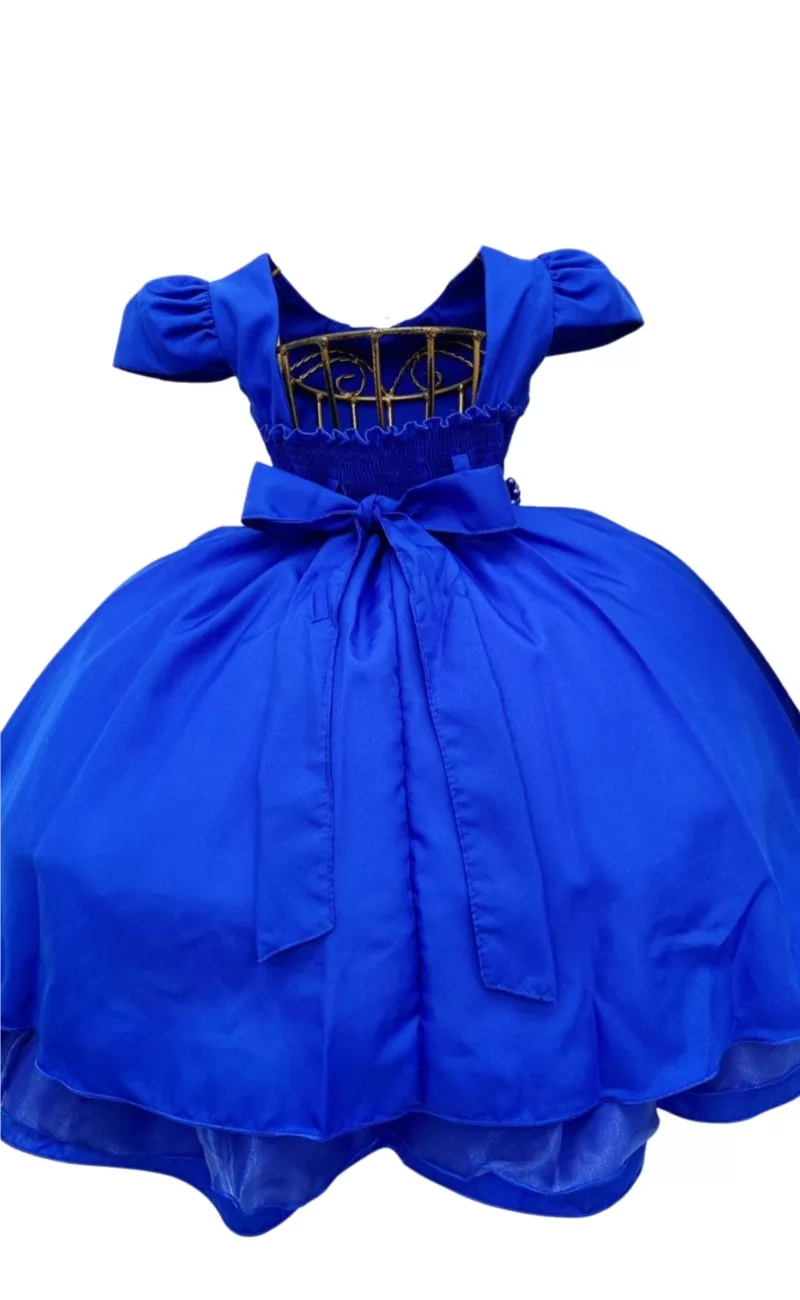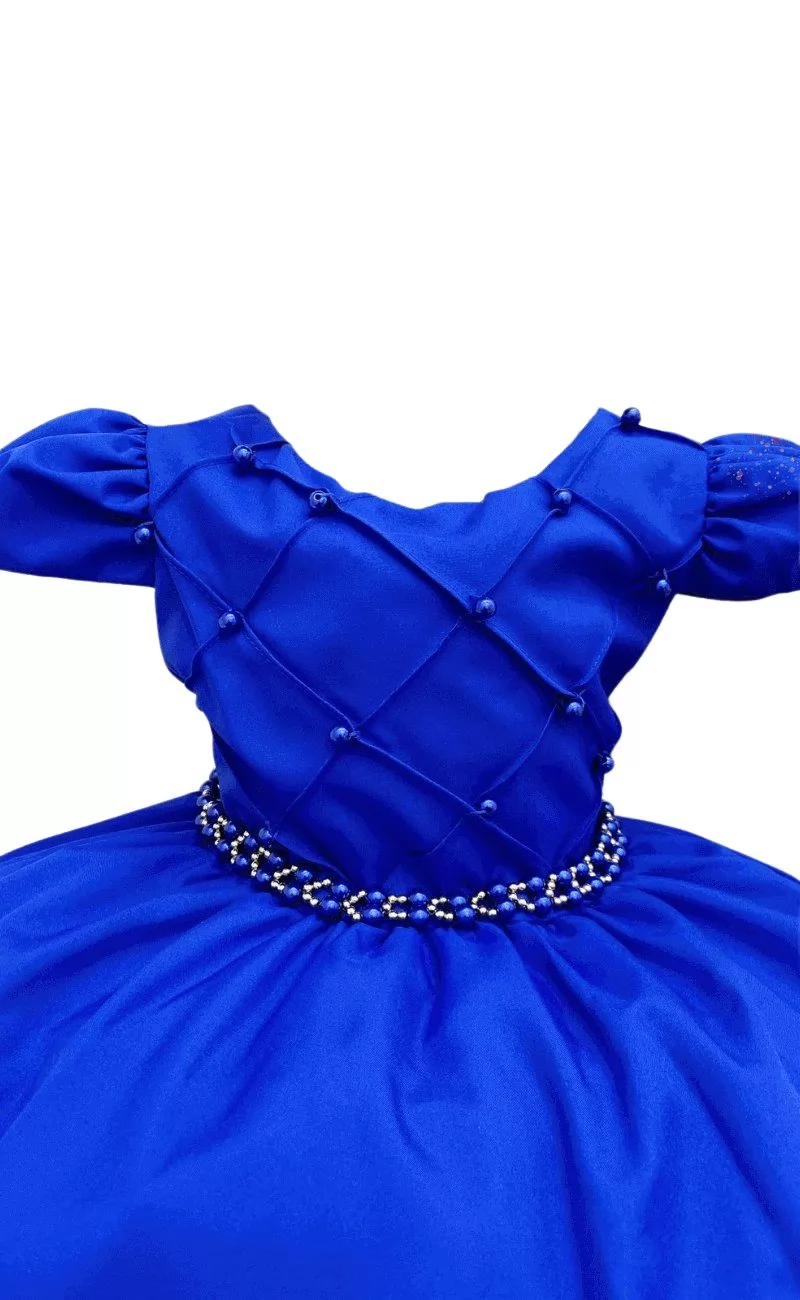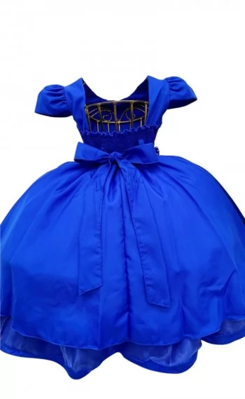 Vestido Infantil de Festa Azul Escuro com Nervuras e Saia Rodada