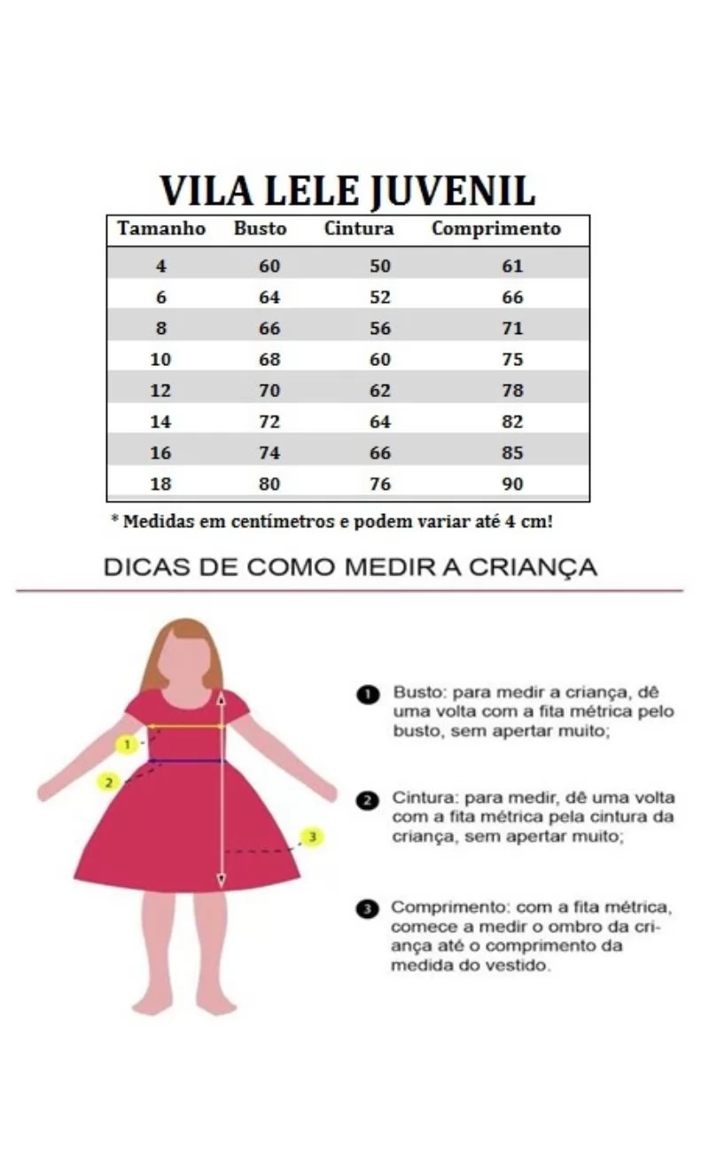 TAMANHO / BUSTO / CINTURA / COMPRIMENTO